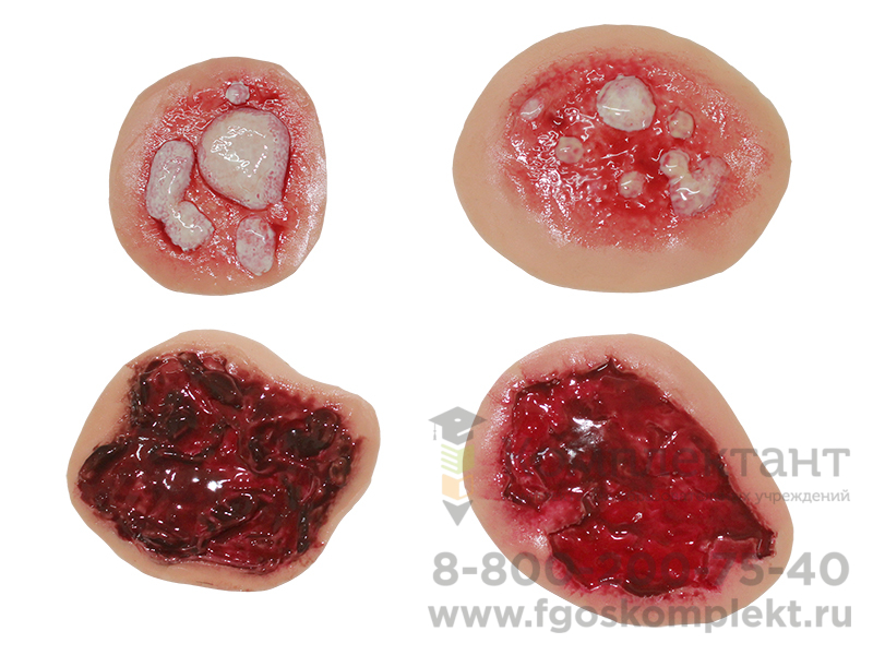 Комплект моделей предназначен для обучения принципам диагностики и лечения часто встречающихся заболеваний и повреждений кожи и подкожной жировой клетчатки. Модели выполнены из полимерных материалов, реалистично воспроизводящих строение и топографию поверхностных мягких тканей человека, удобны для планирования и осуществления учебных операций.